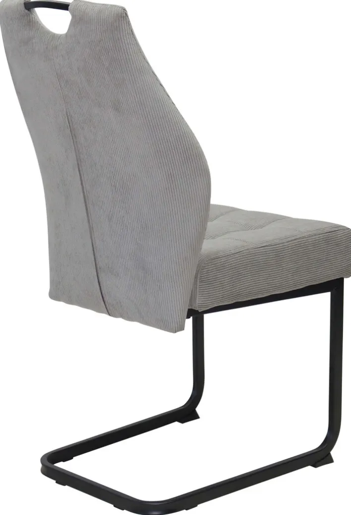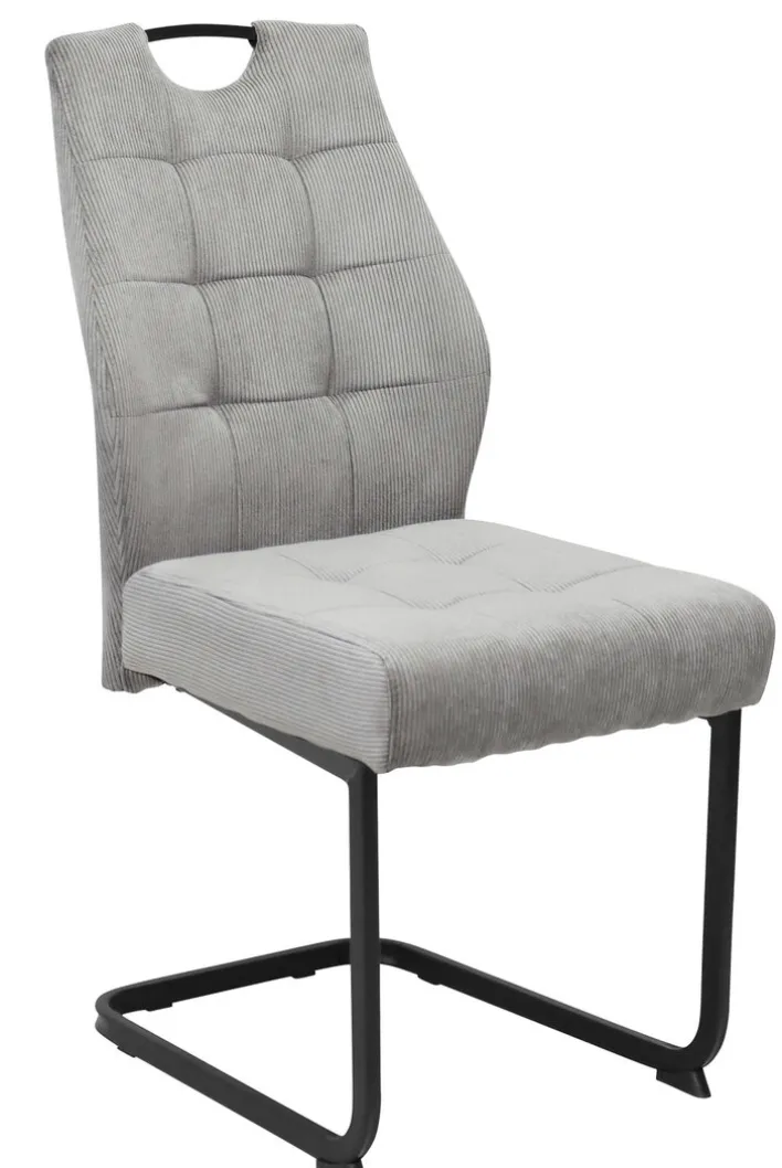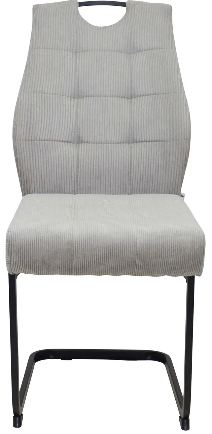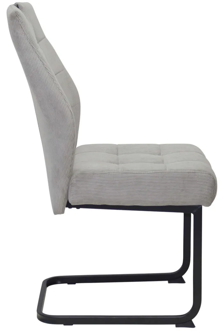 Der Stuhl präsentiert sich in einem eleganten Fjord hellgrau, das sich harmonisch in verschiedene Wohnstile einfügt. Der Bezug aus Cord-Mikrofaser verleiht dem Stuhl eine angenehme Haptik und eine ansprechende Optik. Das pulverbeschichtete Metallgestell in Schwarz sorgt für einen stabilen Stand und ergänzt das moderne Design. Der Schwinggestell-Typ bietet zusätzlichen Sitzkomfort. Der Stuhl ist als Setartikel erhältlich, bestehend aus vier Stühlen, was ihn ideal für Esszimmer oder größere Wohnbereiche macht.