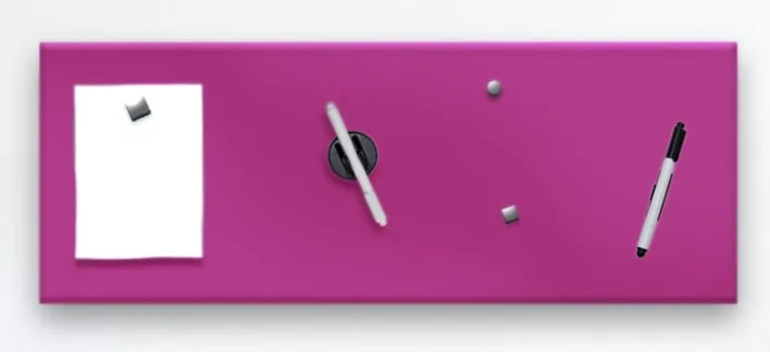 Eine auffällige Fläche zum Schreiben, ein Stift, vier Magnete – mehr braucht es nicht, wenn Sie Ihren Alltag strukturiert organisieren wollen. Das Memoboard aus Metall in Pink von PRO ART bringt Ordnung in Ihre Termine. Auf 80 cm auf 30 cm haben Sie viel Platz, Zettel anzubringen und Termine zu vermerken.
