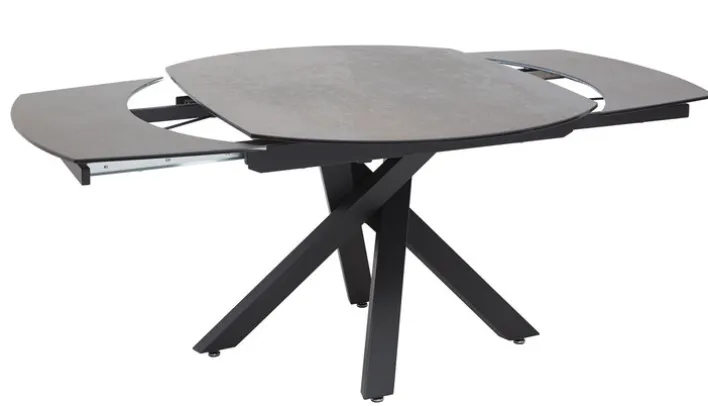 Die Tischplatte ist aus einer rostbraunen Keramik gefertigt und macht diesen Tisch zu einem hochwertigen und stilvollen Möbelstück für das Esszimmer oder die Küche. Das schwarze Gestell aus Stahl mit überkreuzten Tischbeinen sorgt für einen stabilen Stand und verleiht dem Esstisch ein modernes Erscheinungsbild. Mit seiner ovalen Form ist der PURO Esstisch MEMPHIS eine willkommene Abwechslung zu einem runden oder rechteckigen Tisch. Bei Bedarf kann die Tischplatte einfach und schnell verlängert werden.