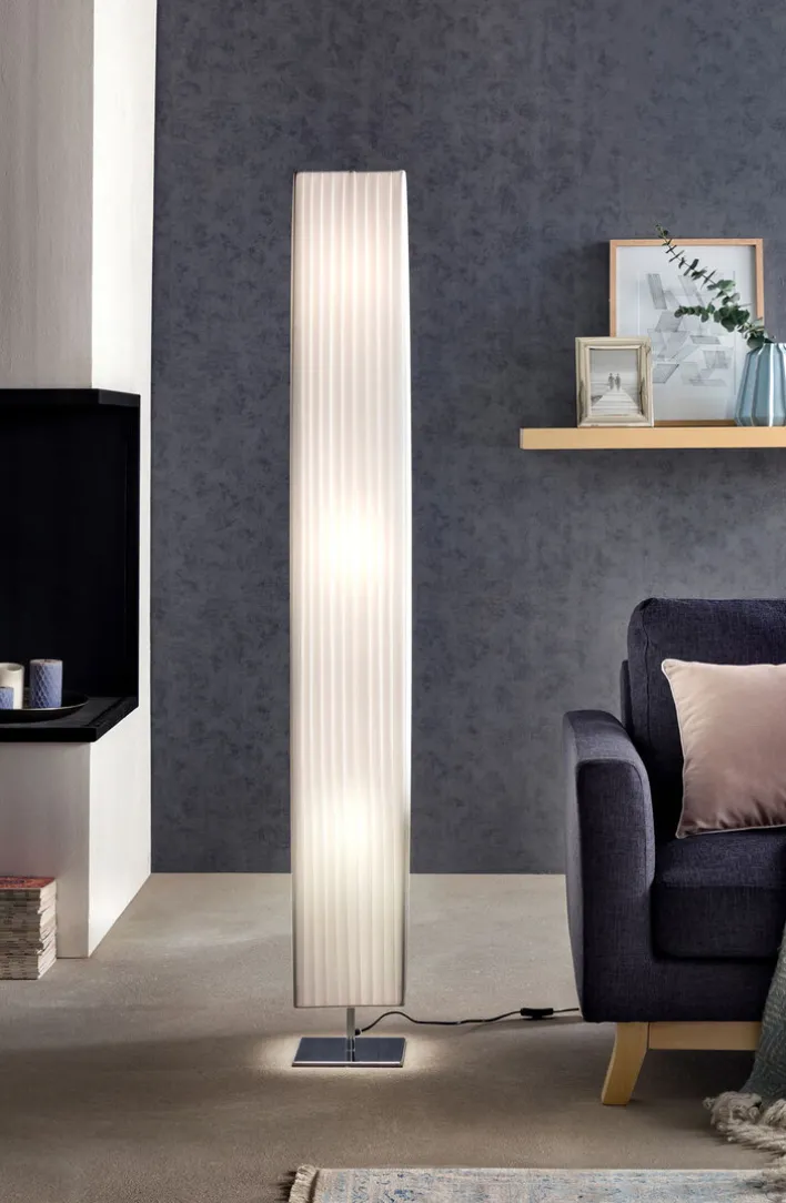 Wer Platz sparen, aber nicht auf ansprechendes Design verzichten möchte, wird mit der Stehlampe RETROFIT fündig. Mit dem quadratischen Maß von 20 x 20 cm und wahlweise einer Höhe von 160 oder 120 cm passt sie in jedes Zimmer. Der schlichte, weiße Schirm in Lamellenoptik lässt sich mit allen Einrichtungsstilen kombinieren.