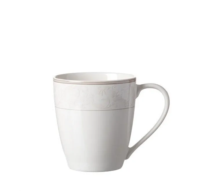 Dieser schöne Kaffeebecher aus der ISABELLA Serie besticht durch zarte, elfenbeinfarbene Ornamente, die als leichter 3D-Effekt. Der cremeweiße Becher bietet mit einem Fassungsvermögen von dreihundertfünfzig Millilitern Platz für Kaffee oder andere Heißgetränke. ISABELLA ist das perfekte Geschirr für besonders festliche Gelegenheiten wie Konfirmation, Kommunion, Hochzeit oder Weihnachten. Die komplette Kollektion ist aus hochwertigem Fine-China-Porzellan gefertigt und natürlich auch spülmaschinengeeignet.