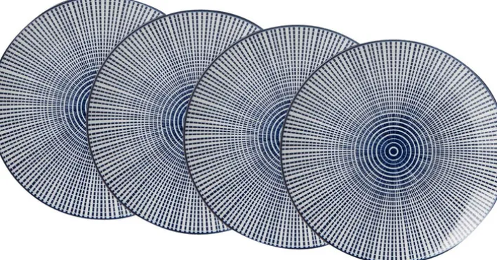 Dank des Speiseteller 4er Sets von Ritzenhoff & Breker macht es einfach Spaß, in Küche, Wohn- oder Esszimmer die verschiedensten Köstlichkeiten zu genießen. Dazu trägt das spannende Muster der flachen Teller bei, aber auch ihre Farbgebung in Weiß und Blau. Jeder der im Durchmesser 26,5 cm großen Teller ist ganz klassisch aus Porzellan gefertigt. Haben sie ihren Job getan, lassen sich die Speiseteller problemlos mit der Spülmaschine reinigen.