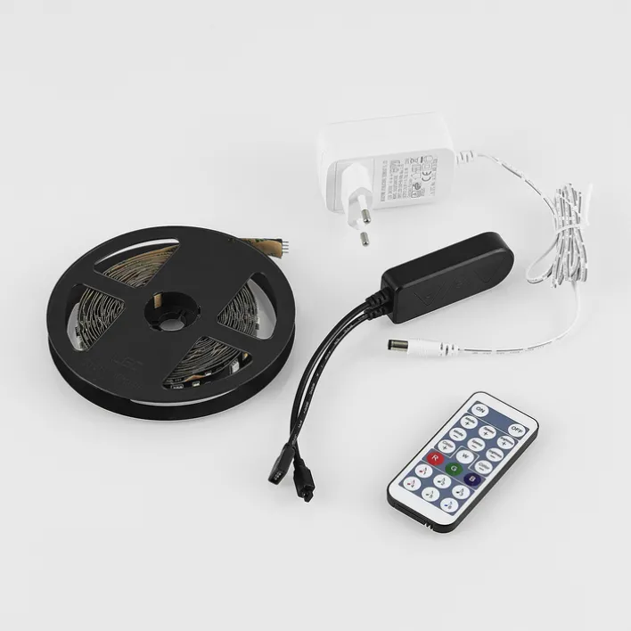 Entdecken Sie das vielseitige LED-Lichterband STRIPE RACER Dynamic Light von Reality RL, das sowohl als dekorative als auch stimmungsvolle Beleuchtung dient. Mit einer Länge von 500 cm und einer Zuleitung von 150 cm bietet es ausreichend Flexibilität für verschiedene Anwendungen. Die Hauptfarbe Schwarz fügt sich nahtlos in jedes Raumdesign ein und sorgt für eine moderne Optik. Dieses Set enthält vier Teile, darunter einen Adapter und eine Fernbedienung, die eine einfache Steuerung der fünf Funktionen ermöglicht. Die fest eingebauten LEDs bieten eine Lichtleistung von 1.250 Lumen bei einem Energieverbrauch von nur 15 Watt. Die Farbtemperatur von 3.000 K sorgt für ein angenehmes, warmweißes Licht, das durch die RGB-Farbwechsler-Funktion individuell angepasst werden kann. Dank der Memory-Funktion bleibt die bevorzugte Einstellung gespeichert. Das Lichterband besteht aus robustem Kunststoff. Mit einer Schutzklasse 2 und Schutzart IP20 ist es für den Innenbereich geeignet. Die Brenndauer von 25.000 Stunden garantiert eine lange Lebensdauer, während der Farbwechsler für zusätzliche Flexibilität sorgt. Dieses Produkt ist ideal für alle, die eine anpassbare und energieeffiziente Beleuchtungslösung suchen.