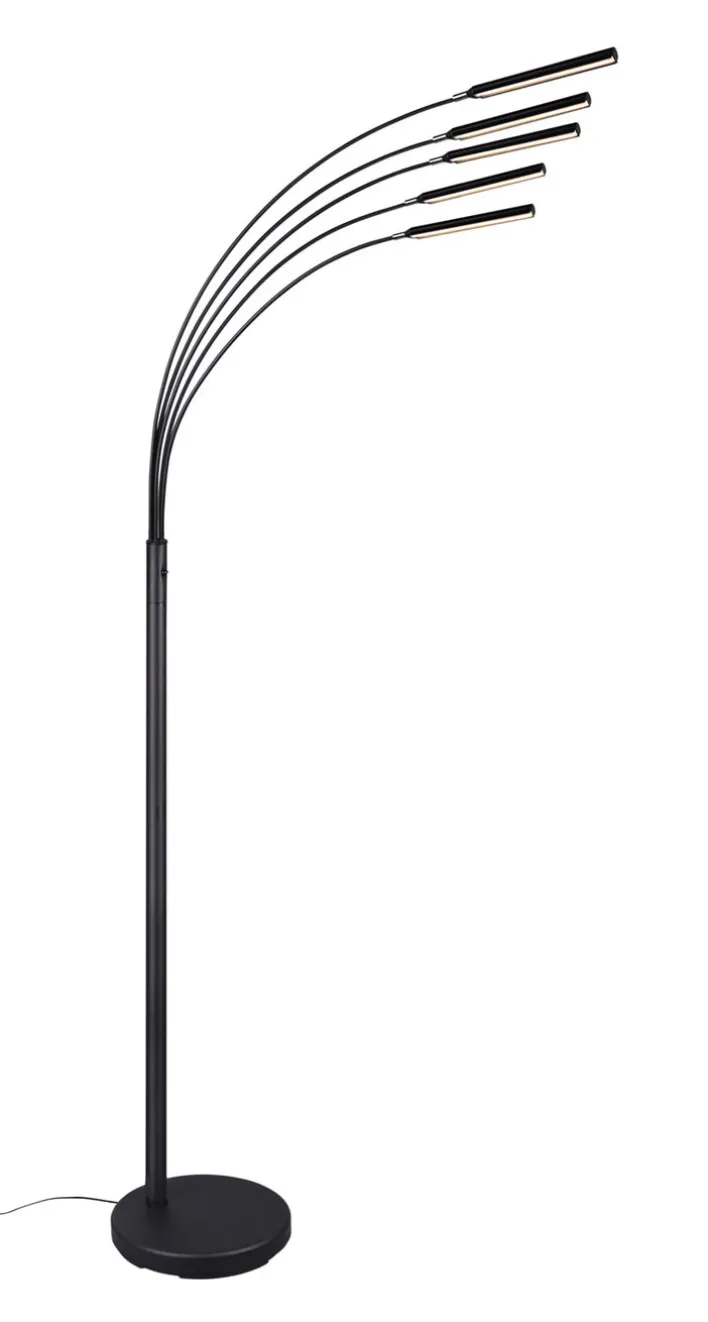 Die 5-flammige RL LED Stehlampe REED besteht aus schwarzem Metall. Sie wird inklusive der Leuchtmittel geliefert. Zudem ist sie dimmbar per Switchdimmer. Ihre Breite beträgt 30 cm, die Länge 30 cm und die Höhe liegt bei 195,5 cm.