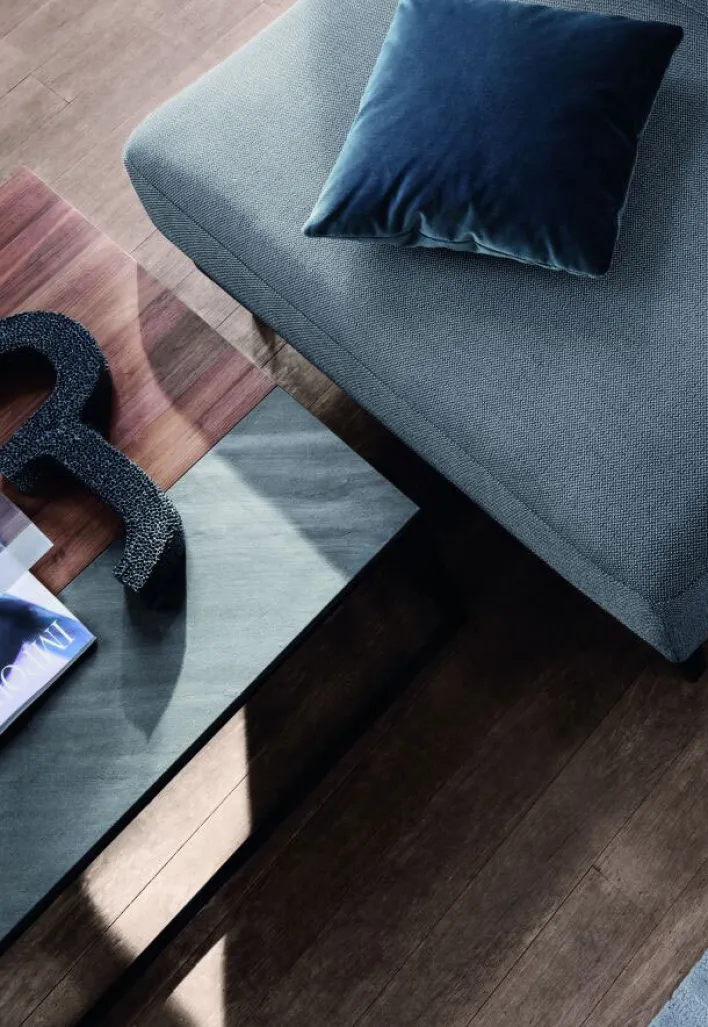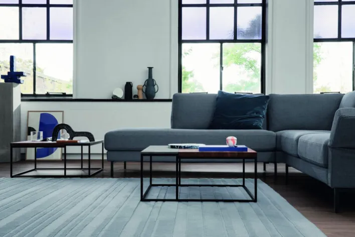 Der quadratische Couchtisch 985 der Marke ROLF BENZ ist 80 x 80 cm groß. Er besticht mit Eleganz und einem geradlinigen Design in Grau, Schwarz und Braun. Die Kombination hochwertiger Materialien für die Tischplatte macht den modernen Couchtisch 985 zu einem besonderen Schmuckstück im Wohnzimmer.