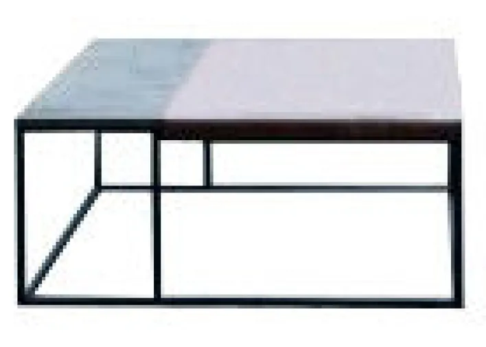 Das stabile Gestell des Couchtisches 985 ist aus schwarz lackiertem Stahl mit kantigem Profil gefertigt. Die auffällige Tischplatte vereint zwei völlig unterschiedliche natürliche Materialien, die dennoch perfekt zusammen harmonieren. Massives Holz vom Nussbaum, bei dem die Holzmaserung schön ausgeprägt ist, strahlt Wärme aus. Es steht im Gegensatz zur kühlen Wirkung des grauen Sandsteins mit imprägnierter Oberfläche.
