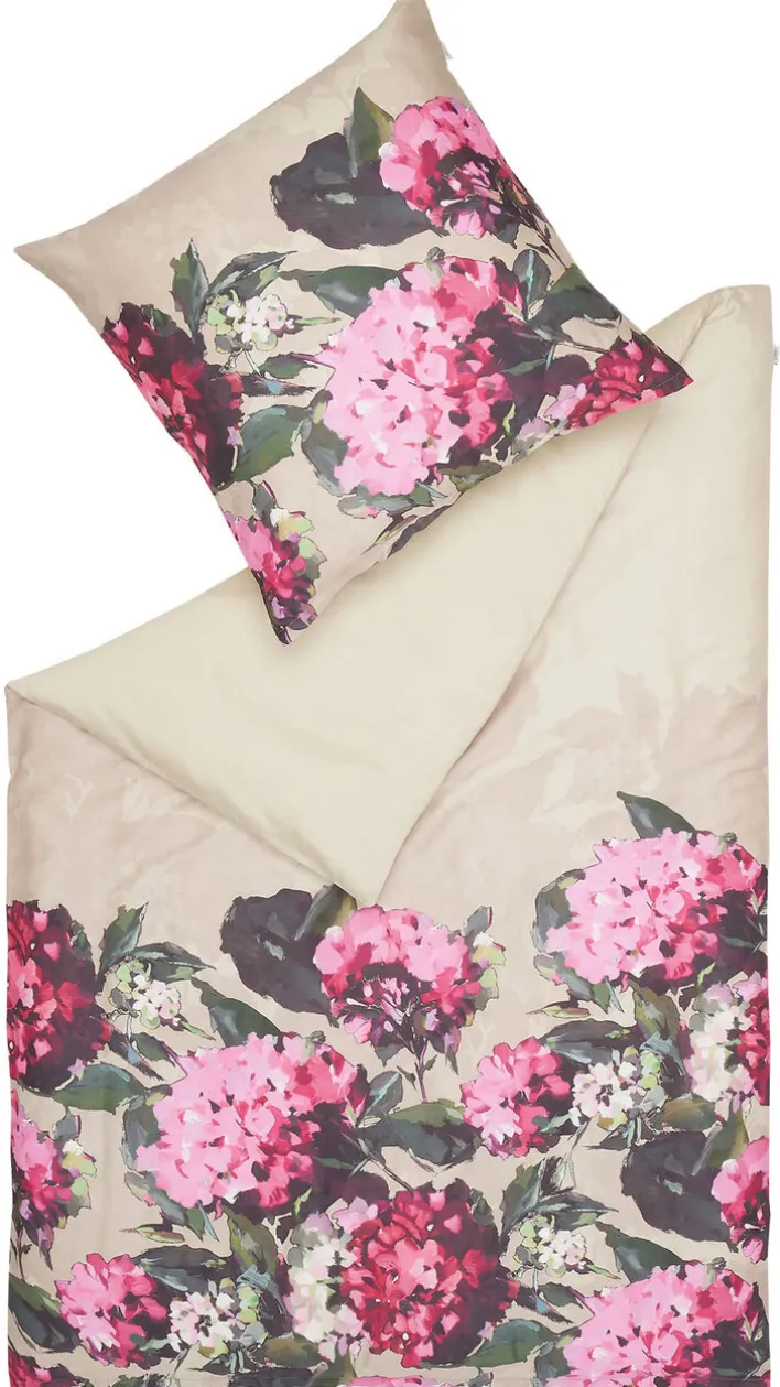 Mal floral, mal uni: Die SCHÖNER WOHNEN-Kollektion Satin-Bettwäsche HORTENSIE ist 135 x 200 cm groß. Auf dem Untergrund in Beige leuchten Hortensien in wunderbaren Rose- und Rottönen. Die Bezüge sind mit Reißverschlüssen versehen.