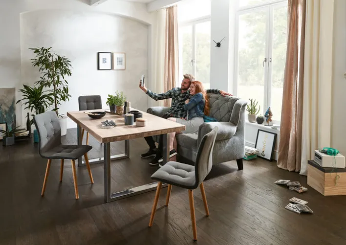 Farbe: GrauBraunFarbton: Holzfüße antikfarbenHauptfarbe: Grau
