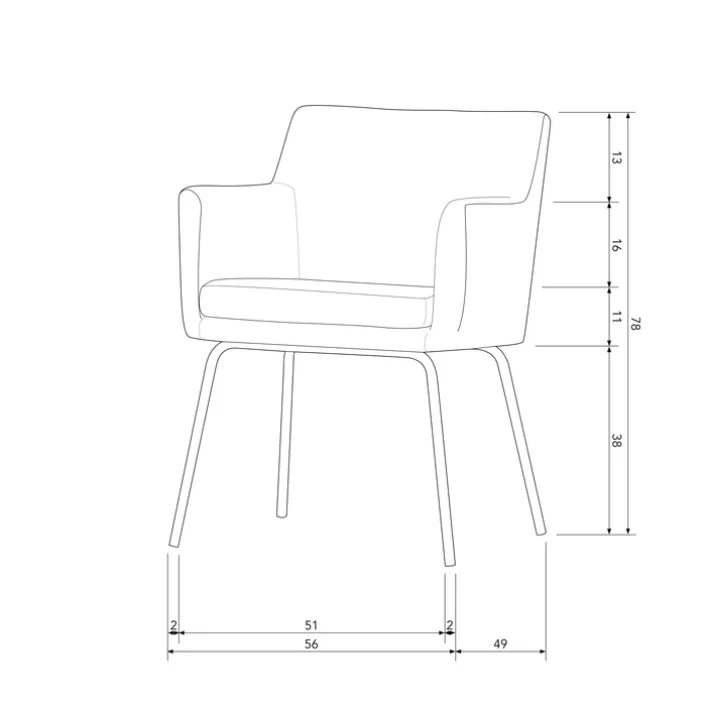 Breite: 59 cmHöhe: 78 cmTiefe/Ausladung: 56 cmGewicht: 10,00 kgSitzbreite: 43 cmSitztiefe: 43 cmSitzhöhe: 49 cmmaximale Belastbarkeit: 150 kgHöhe Rückenlehne: 34 cmHöhe Armlehne: 18 cm