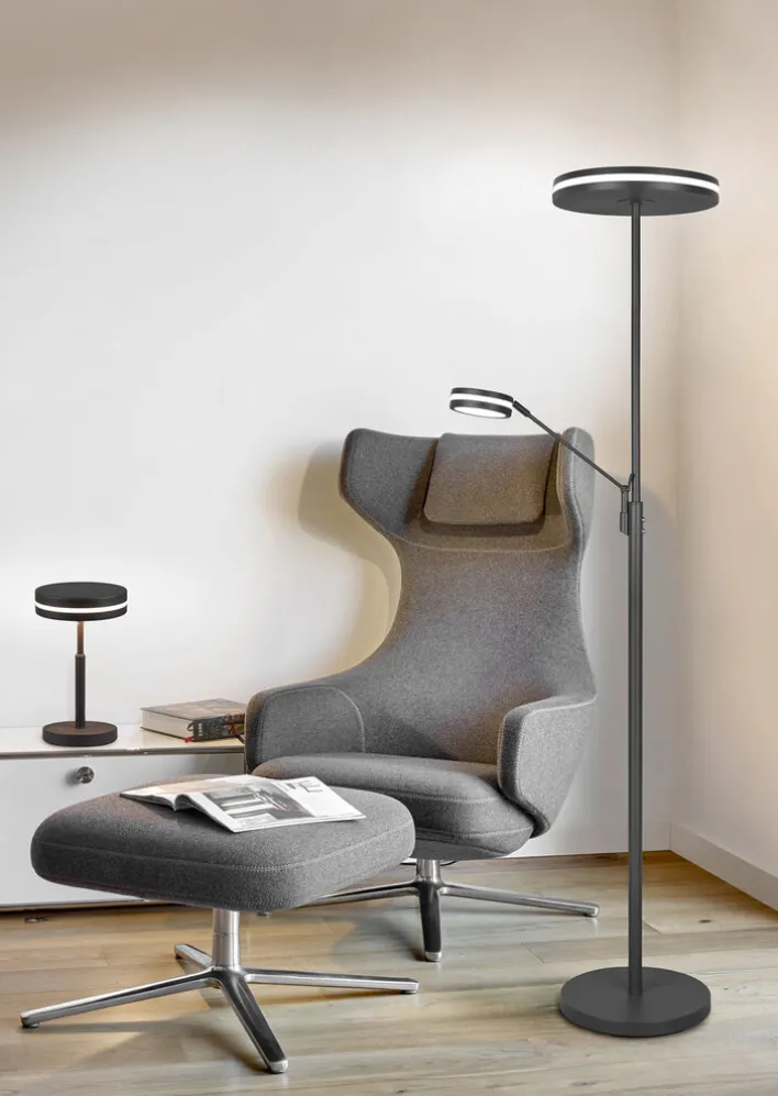 Der 2-flammige LED Deckenfluter FRANKLIN von TRIO hat ein zeitloses Design und ist ein elegantes Beleuchtungselement für modern eingerichtete Wohnzimmer. Durch die schön gestalteten Oberflächen im Farbton anthrazit fällt der Fluter sofort ins Auge und ist vielseitig kombinierbar. Zur Ausstattung der Lampe zählen eine Memory-Funktion, eine CCT-Lichtfarbverstellung und ein Sensordimmer. Der getrennt schaltbare Deckenfluter mit Leselampe sorgt stets für eine angenehme Beleuchtung.