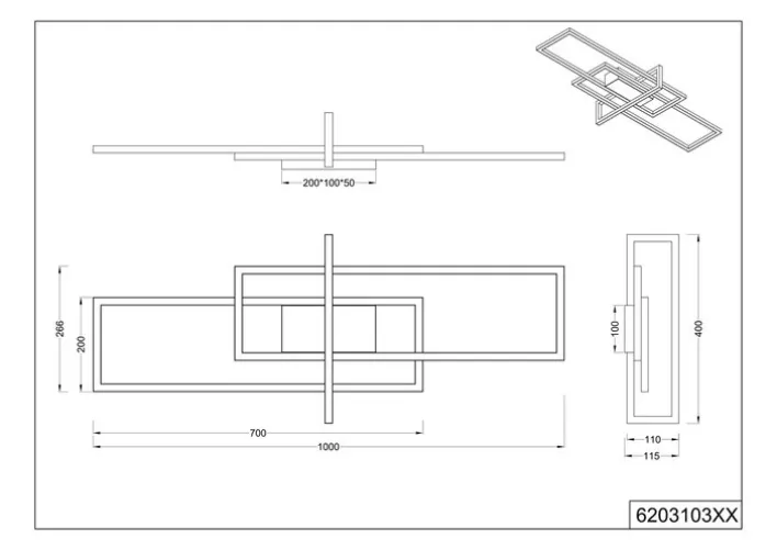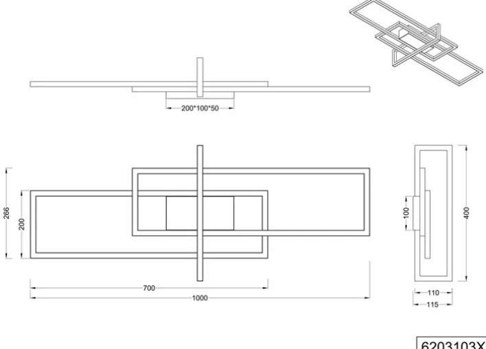 Die Struktur ist höchst modern und punktet mit schlichter Eleganz. Die Lampe besteht aus offenen Rechtecken und wirkt daher sehr leicht. Tatsächlich wiegt sie trotz ihrer Größe nur knapp 1,5 Kilogramm. Die fest eingebaute LED verbraucht nur 34 Watt. Ihre Brenndauer von 30.000 Stunden garantiert eine hohe Langlebigkeit bei bester Lichtqualität. Die Helligkeit liegt bei 3.900 Lumen, die Farbtemperatur bei 3.000 Kelvin. Die schicke Deckenlampe passt in Wohn- oder Esszimmer.