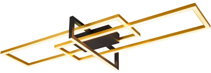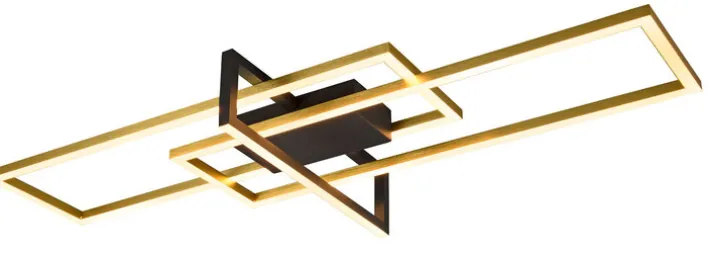 Die TRIO LED Deckenlampe SALINAS ist messingfarbig. Sie lässt sich per Switch-Dimmer nach Belieben einstellen. Die Lampe misst in Breite und Länge 100 x 40 cm.