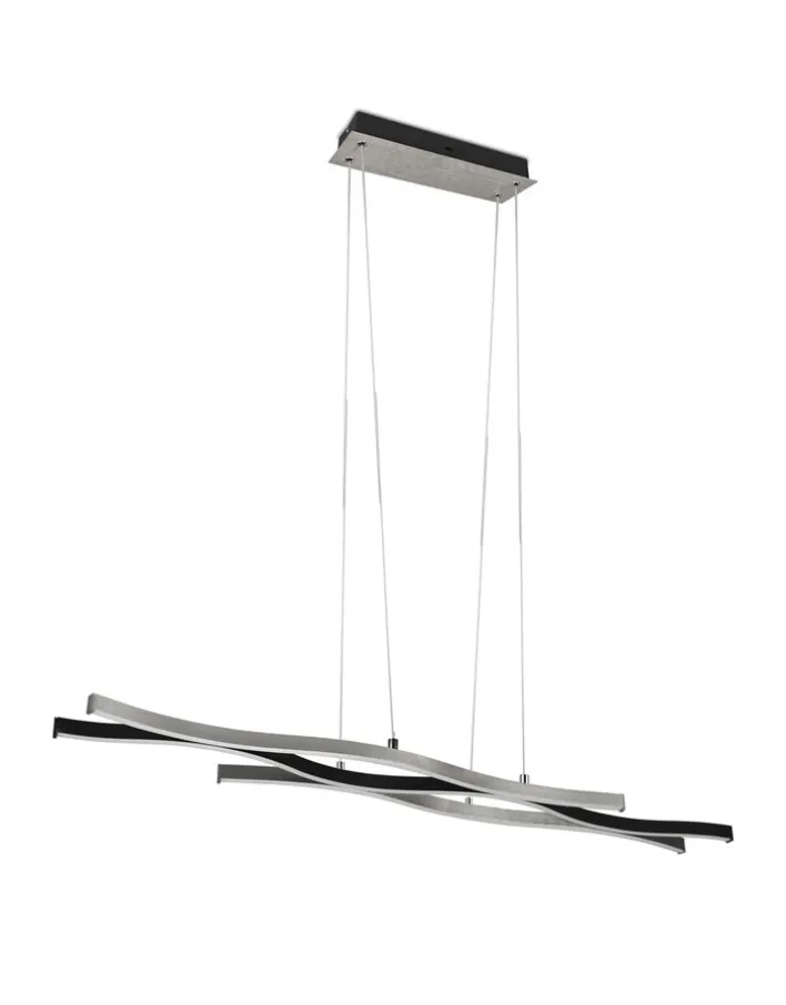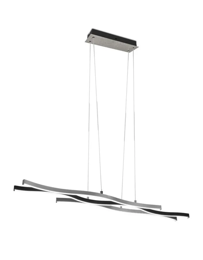 Die 1-flammige LED Pendelleuchte BLAZE hat eine Breite von etwa 107 cm und passt in modern eingerichtete Wohn- oder Esszimmer. Durch die schwarz- und nickelfarbigen Oberflächen fällt die Lampe mit dem schön geschwungenen Pendel sofort ins Auge und ist vielseitig kombinierbar. Mit Dip Switch und Lichtfarbverstellung (CCT) ausgestattet, sorgt die dimmbare Pendelleuchte über einem großen Tisch platziert stets für eine angenehme Beleuchtung.