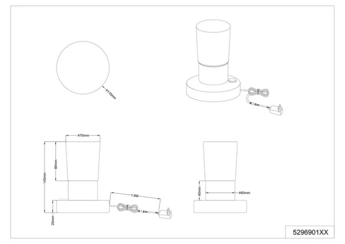 Die einflammige Leuchte hat eine SMD LED Fassung und ein Leuchtmittel inklusive, welches 4,5 Watt bei 230 V in sich trägt. Es ist nicht wechselbar. Als langlebiges Produkt hat die Lampe eine Brenndauer von etwa 30.000 Stunden, einen Lichtstrom von 400 Lumen sowie eine Lichtfarbe von 3.000 Kelvin. Bei den Materialien handelt es sich um Metall und Glas.