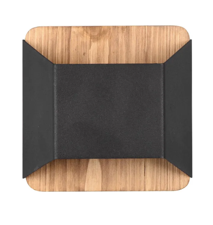Der Korpus der dimmbaren Wandlampe ist in attraktiver Holzoptik gestaltet. Der Lampenschirm besteht aus Metall und hat matt lackierte Oberflächen. Das energieeffiziente LED-Leuchtmittel der modernen Wandlampe ist fest eingebaut und hat eine Lebensdauer von etwa 50.000 Betriebsstunden.