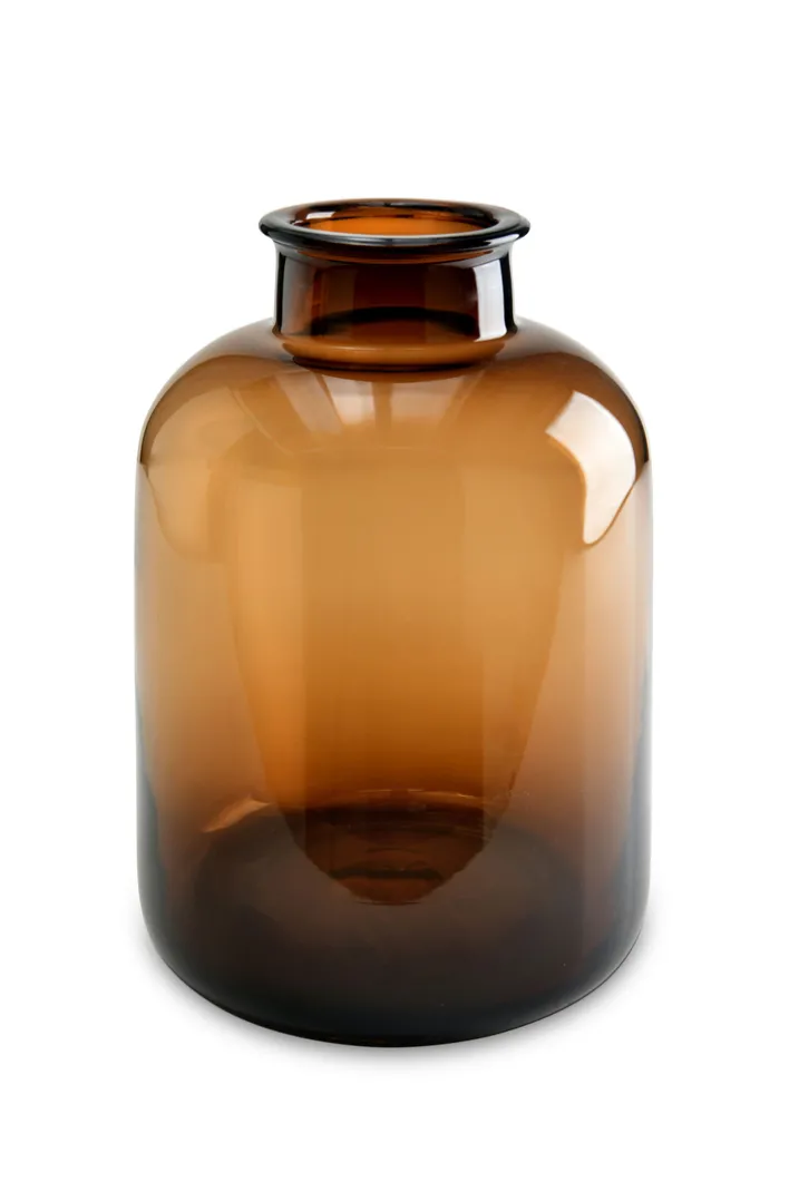 Das braune Farbglas verleiht dem Objekt eine warme Ausstrahlung und sorgt für einen harmonischen Akzent im Wohnbereich. Die Oberfläche ist glatt und glänzend, wodurch die Farbe besonders intensiv zur Geltung kommt.