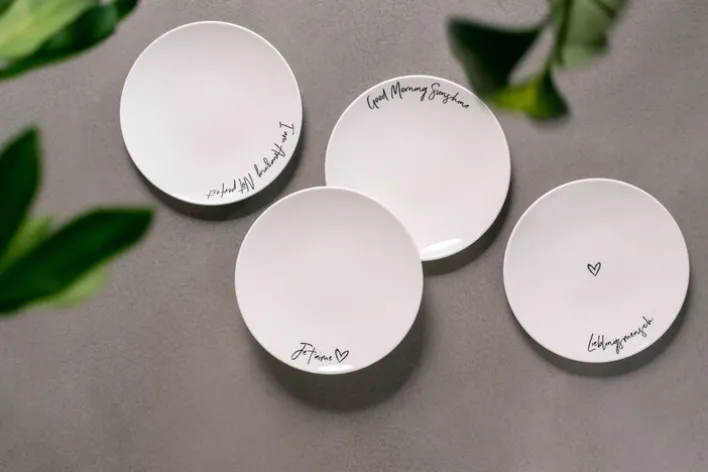 Ein Stück Geschirr von anrührendem Zauber ist dieser Villeroy & Boch Frühstücksteller STATEMENT LIEBLINGSMENSCH. Er ist einfach wundervoll als Geschenk oder Bekenntnis zu diesem einen Menschen, der das Leben bereichert. Neben seinem ideellen Wert zeichnet der Teller sich durch eine herausragende Qualität aus. Er besteht aus Premium Porzellan, ist robust, langlebig und geeignet für Mikrowelle und Spülmaschine.