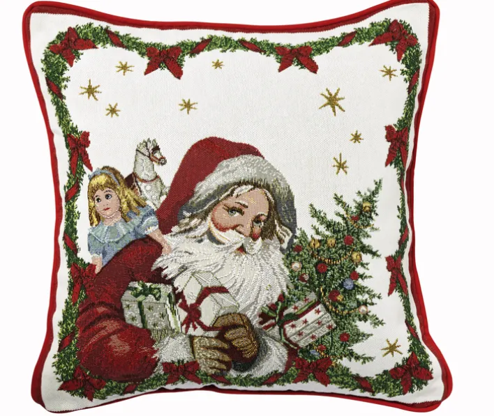Das Villeroy & Boch Gobelin Wendekissen Santa TOY’S FANTASY mit Maßen von 45 x 45 cm kommt inklusive Inlett und zeigt den Weihnachtsmann in einer ganz neuen, jugendhaften Interpretation. Der unverkennbare Stil der Bildwirkerei verleiht diesem Wendekissen eine erhabene und sehr stilvolle Optik, auch die Kontrastnähte an den Kissenrändern sind ein weiterer Hingucker.