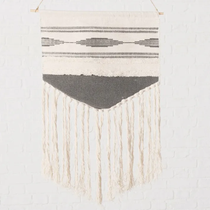 Die Wanddeko ZENYA kommt im angesagten Boho-Stil daher und verleiht dem Zuhause einen ganz besonderen Charme. Mit den langen Fransen aus recycelter Baumwolle strahlt sie Gemütlichkeit und einen nachhaltigen Lebensstil aus. 55 cm breit und 80 cm hoch passt sie perfekt an lange, schmale Wände. Über einem breiten Sofa lassen sich gut mehrere Behänge dieser Art nebeneinander arrangieren, am besten in versetzter Höhe.