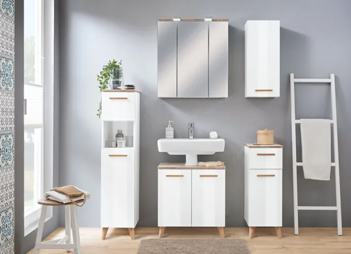 Dieser kompakte Wandschrank eignet sich mit seinen Maßen von 30 x 70 x 20 cm sowohl für kleinere wie auch für größere Badezimmer. Im Inneren des Schranks befindet sich jede Menge Stauraum für unterschiedliche Hygieneartikel wie Cremes, Haarprodukte oder sonstiges Kosmetikzubehör. Dank des tollen Designs in Weiß/Braun sorgt der Hängeschrank für ein stilvoll-elegantes Ambiente im Badezimmer.