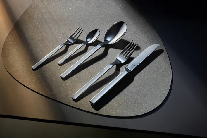 Die klaren Linien und das moderne Design des Bestecks sind auf dem Bild deutlich erkennbar. Die Griffe sind glatt und ergonomisch geformt, was eine angenehme Handhabung ermöglicht. Mit einer Breite von 38,5 cm, einer Höhe von 9,5 cm und einer Tiefe von 48,5 cm ist das Set kompakt und dennoch umfassend genug, um alle Bedürfnisse abzudecken. Dieses Set ist ideal für Familien und eignet sich hervorragend für den täglichen Gebrauch sowie für besondere Anlässe.