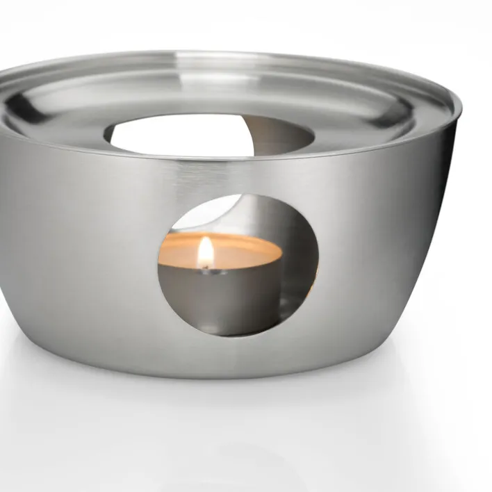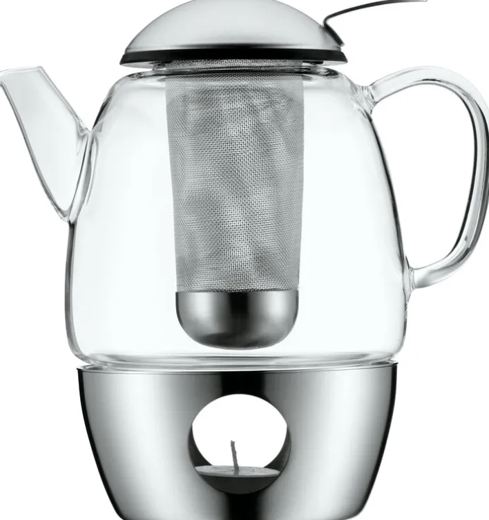 Das WMF SmarTea -Set zeigt einen transparenten, klaren Glaskörper, der Ihnen erlaubt, den Tee visuell zu überwachen. Dieser Glaskörper sitzt auf einem Sockel aus Edelstahl mit einer Öffnung für ein Teelicht, das zum Warmhalten des Tee dient. Das abnehmbare Teesieb ist aus hochwertigem Edelstahl hergestellt und wird einer Gummidichtung beigefügt, die als Siegel dient. Der Deckel ist ebenso aus rostfreiem Stahl. Dieser SmarTea-Satz unterstreicht die hohe Qualität und Funktionalitätsnormen der WMF.