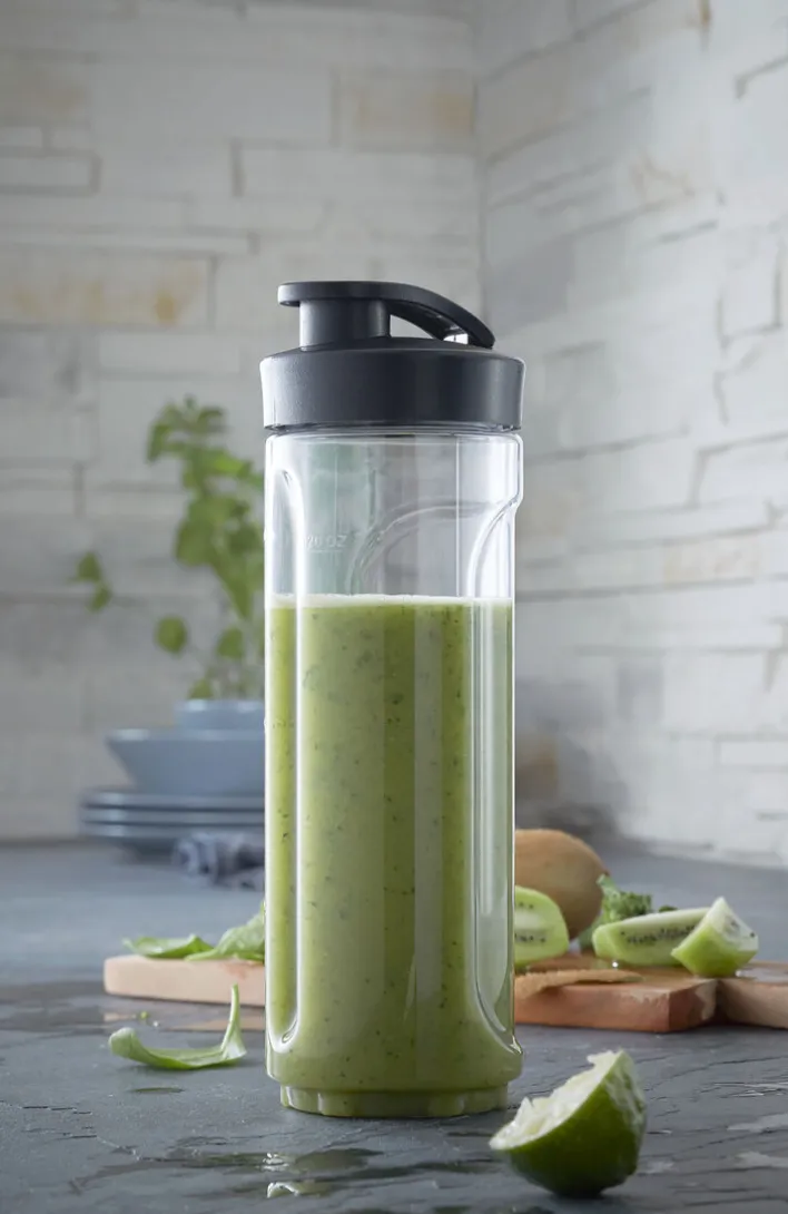 Die WMF Trinkflasche KULT X mit einem Volumen von 600 ml ist der praktische Begleiter für Schule, Sport und Freizeit. Durch den praktischen Trinkdeckel ist die Flasche in den Farben schwarz und transparent ideal für Smoothies oder Shakes. Zum einfachen Herstellen der Getränke ist die Flasche mit einem Gewinde ausgestattet, die genau auf den Mixer von WMF passt. Dicht verschlossen passt die Flasche in jeden Rucksack oder in die Sporttasche.