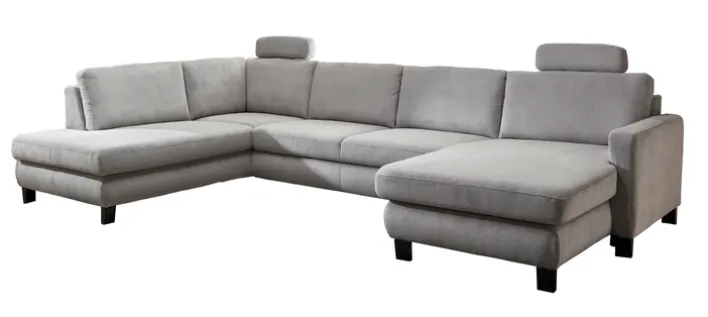 Das Material der Wohnlandschaft besteht aus einem hochwertigen Textil mit einer Cord-Oberfläche, die aus 88 % Polyester und 12 % Polyamid/Nylon gefertigt ist. Diese Kombination sorgt für Langlebigkeit und eine angenehme Haptik. Die Polsterung aus Polyschaum bietet optimalen Sitzkomfort. Zwei Kopfstützen und zwei Bettkästen sind inklusive, was zusätzlichen Stauraum und Flexibilität bietet. Die schwarzen Holzfüße verleihen der Wohnlandschaft Stabilität und einen modernen Look.
