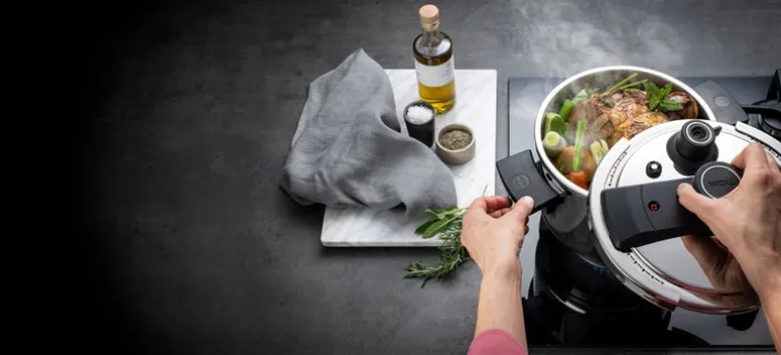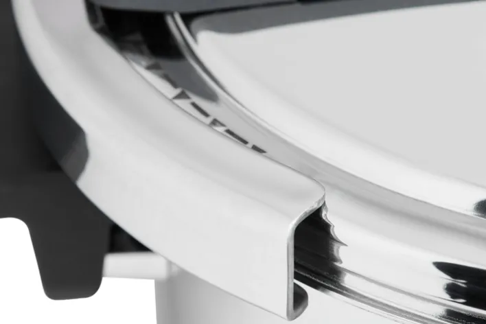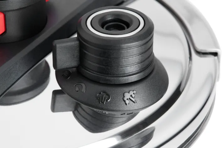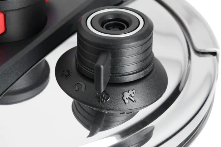 Der Deckel des Schnellkochtopfs verfügt im Deckel über die typischen Knöpfe und Bedienelemente. Ein Dünsteinsatz gehört zum Lieferumfang des Modells, das unter Garantie zu 100 Prozent German Engineered ist, dazu. Auf allen Herdarten sorgt der Topf aus Edelstahl und Kunststoff pünktlich für eine leckere Mahlzeit. Der Kochtopf wiegt mit Deckel nur 3,69 Kilogramm.