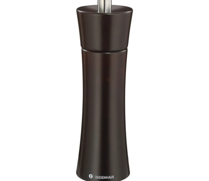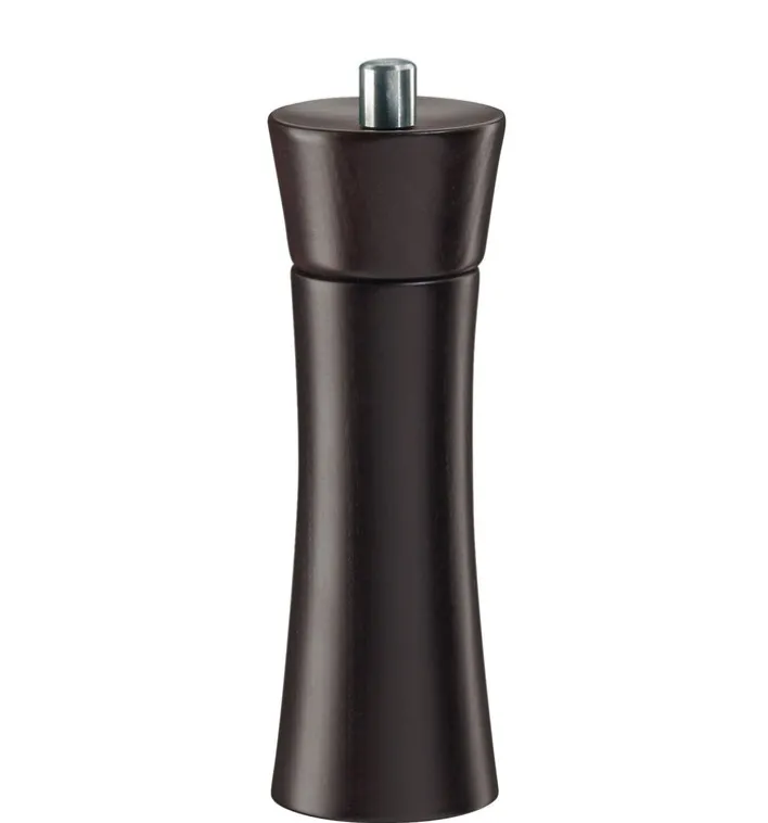 Diese achtzehn Zentimeter hohe Salzmühle FRANKFURT aus naturbelassenem dunklen Buchenholz mit einem Mahlwerk aus deutscher Hochleistungskeramik fehlt in Ihrer Küche. Von ultrafein bis grob, von Mahlgrad eins bis Mahlgrad sechs, so können Sie den Mahlgrad dieser praktischen Pfeffermühle selbst variieren. Das verschleiß- und korrosionsfreie Mahlwerk ist für Pfeffer, Salz, Gewürze und getrocknete Kräuter geeignet.