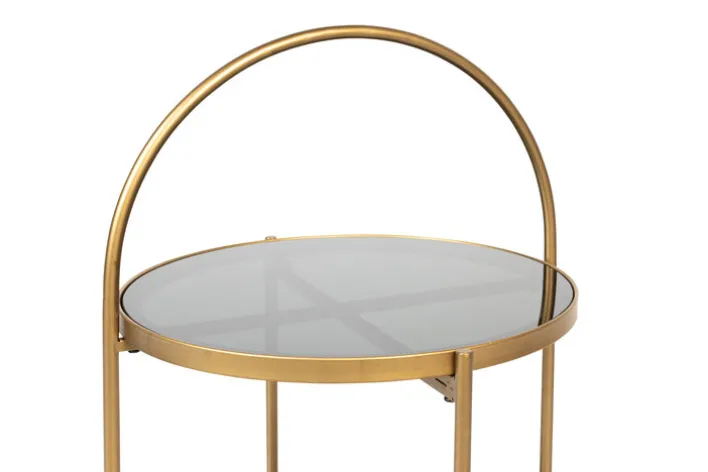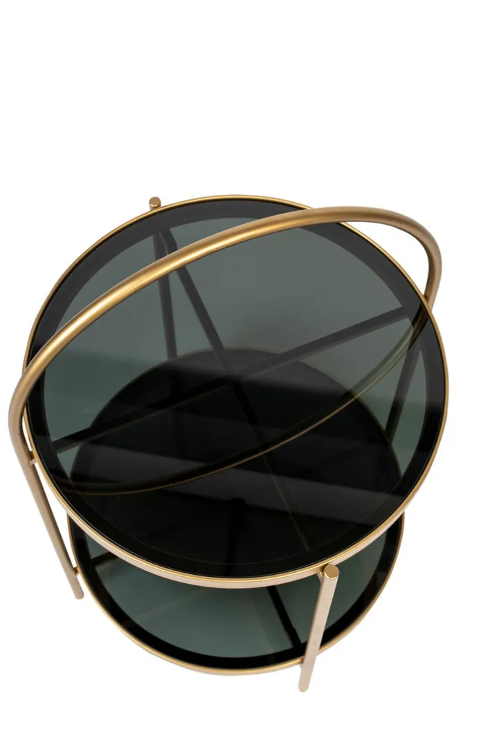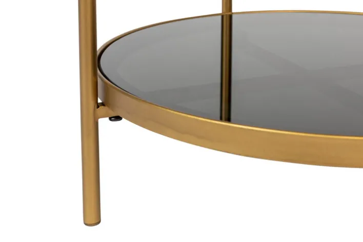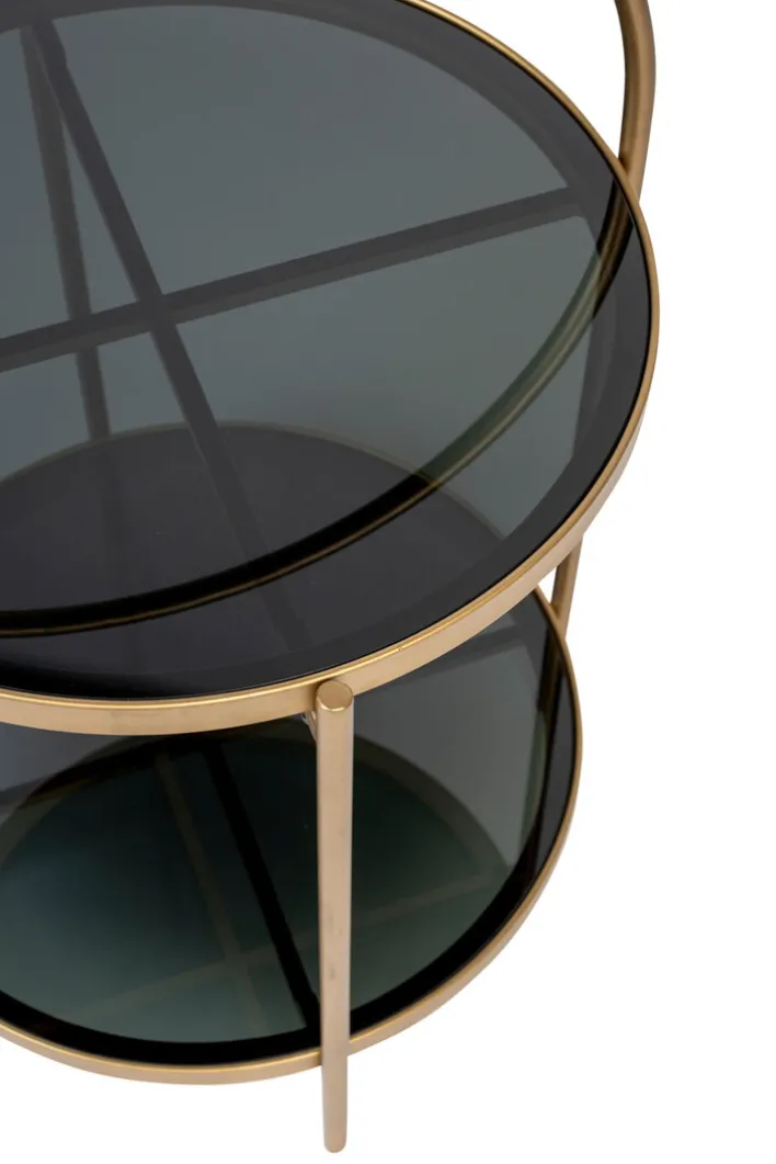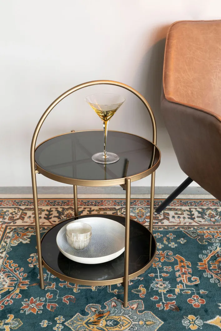 Der schwarz- und goldfarbige Beistelltisch EVE von zuiver zeichnet sich durch sein zeitloses Design aus und passt in modern oder klassisch eingerichtete Wohnbereiche. Durch die Kombination aus gehärtetem Glas und Metall ist der runde Tisch mit Ablage ein Blickfang, der zahlreiche Kombinationsmöglichkeiten bietet. Der schöne Tisch ist die ideale Ergänzung für eine Sitzecke oder kommt neben einem Sessel gut zur Geltung. Der Beistelltisch hat Charme und schafft eine wohnliche Atmosphäre.